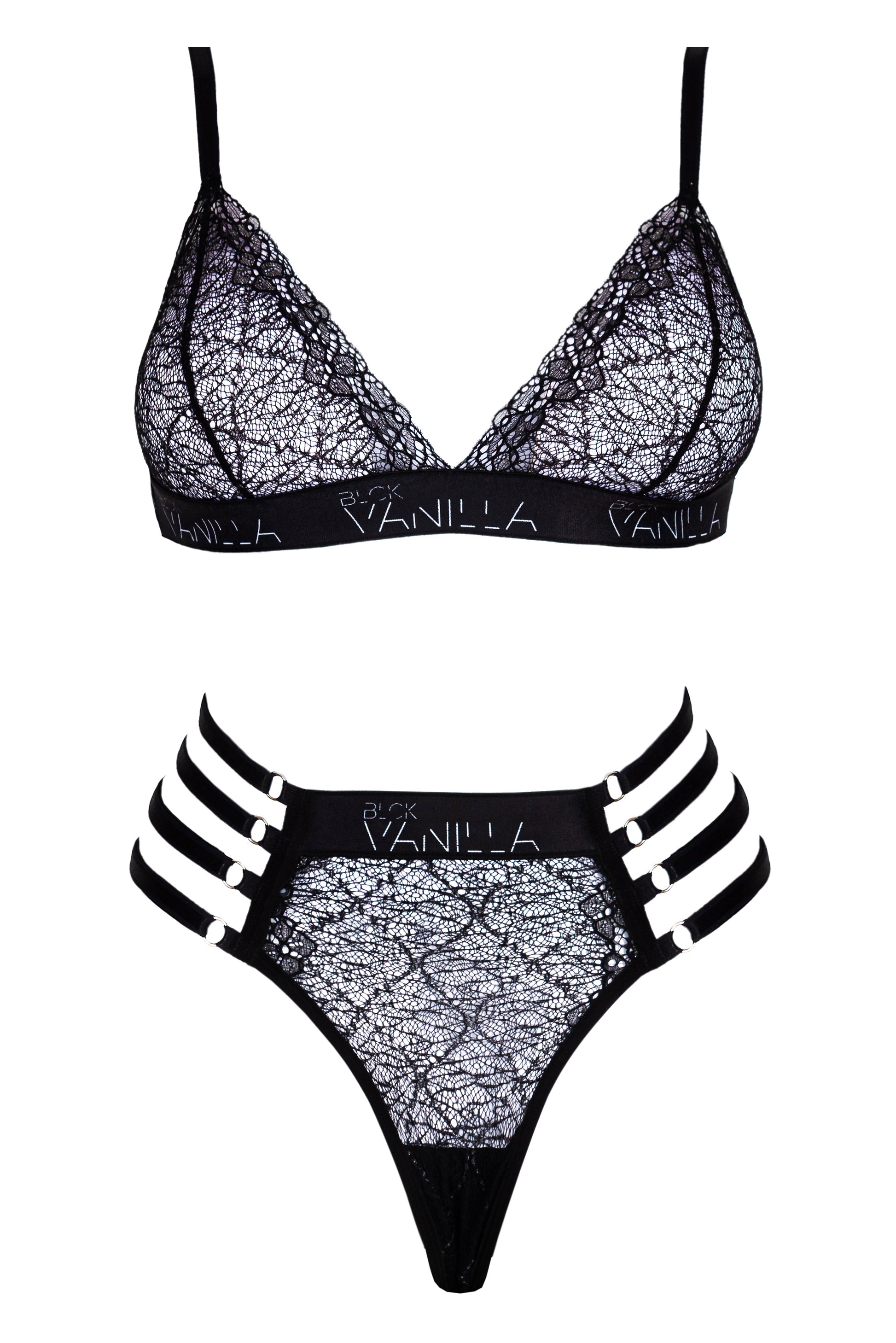 Комбинация от нежна дантела и спортна визия. Страничните ластици и високата талия придават изключително женствена визия.