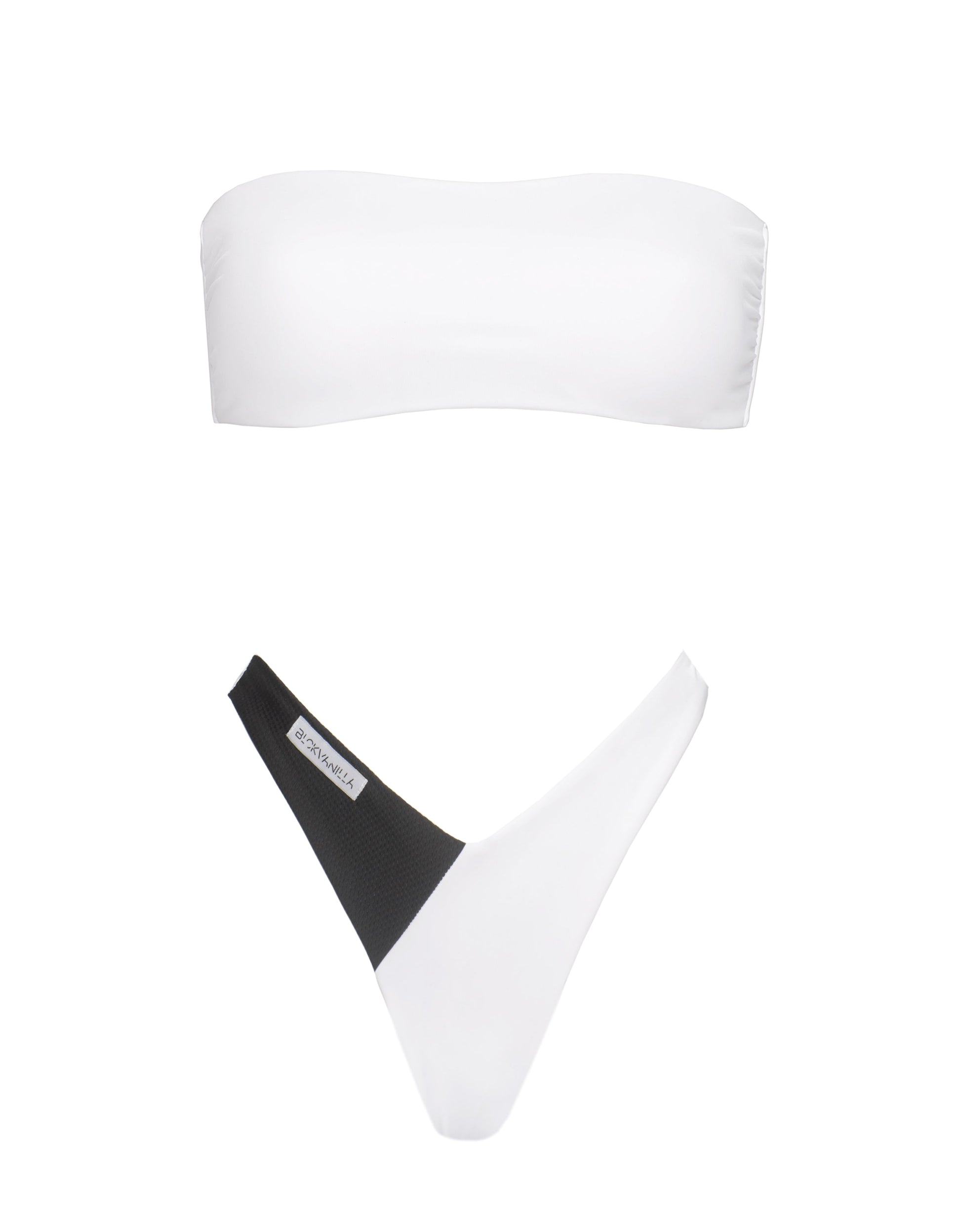 Подплатен с нежен хастар . Висока талия прашка и бандо с подвижни подплънки.