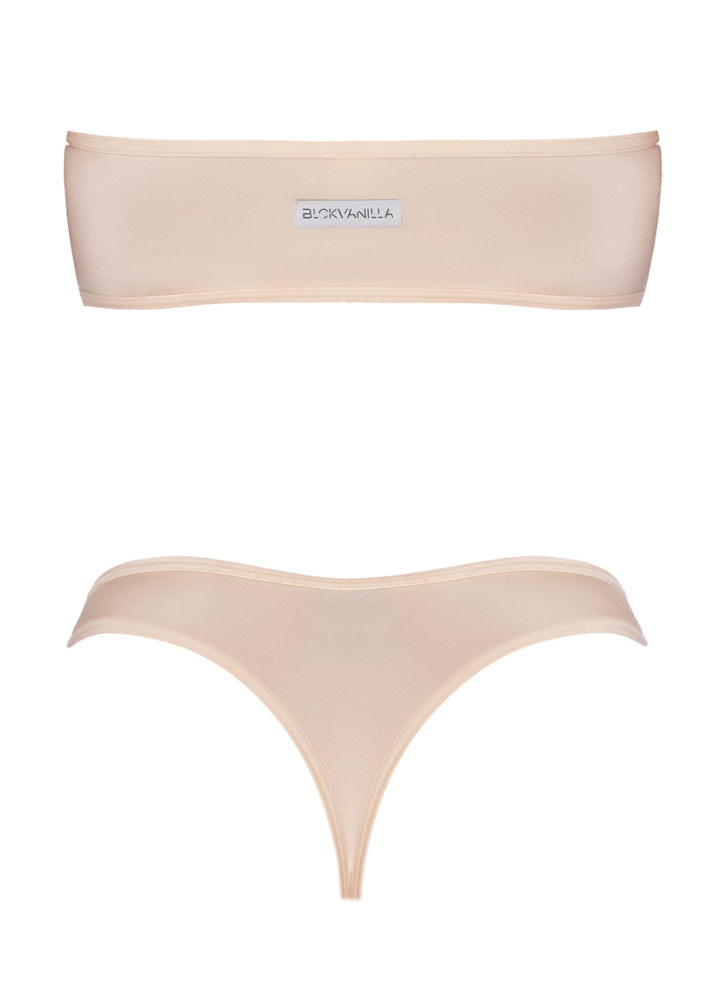 Бански , изработен от изключително качествена ликра и тюл. Подплатен с нежен хастар . Висока талия прашка и бандо с подвижни подплънки. Лекота на материята: 180 g/m²; UPF 50+ UV защита.