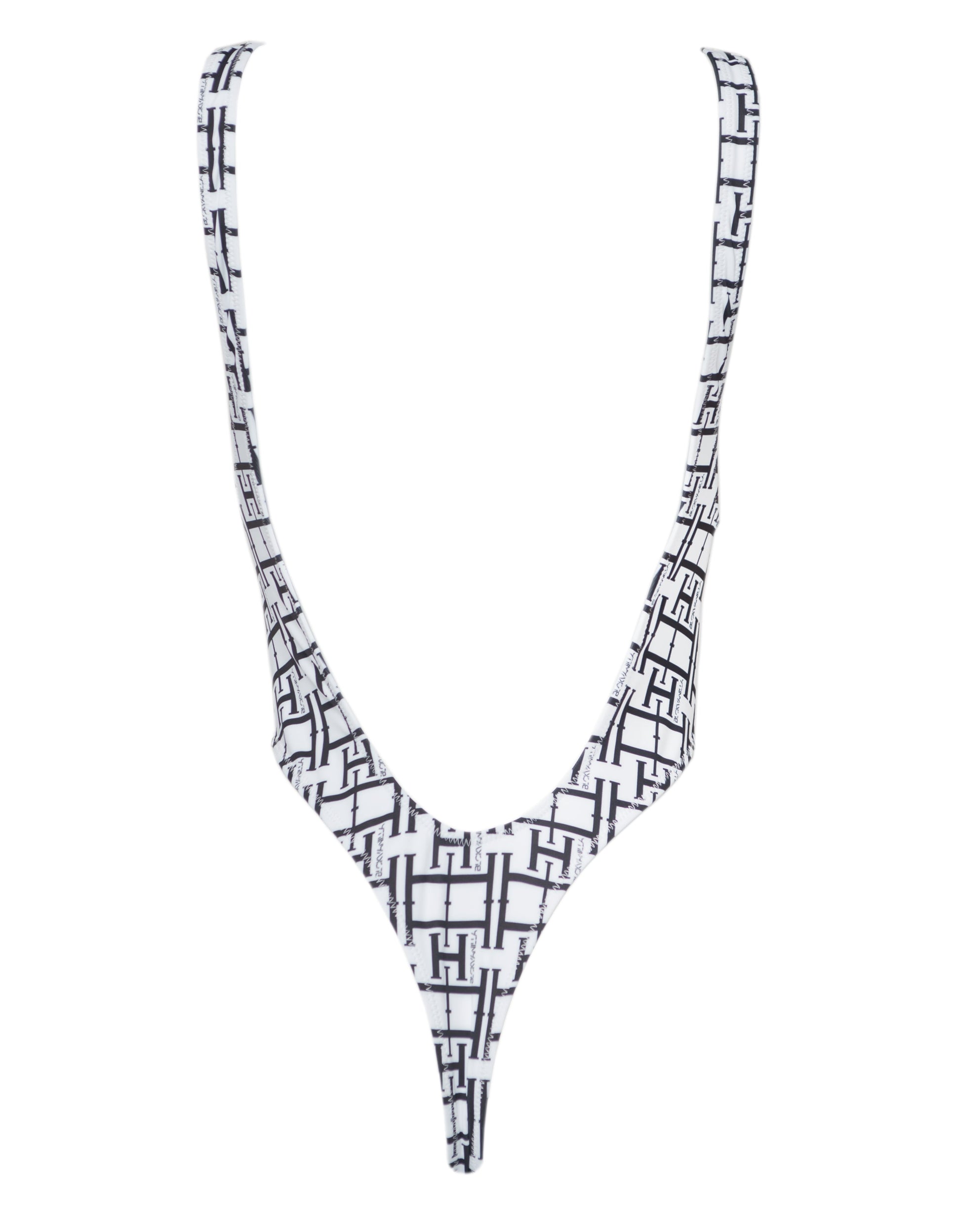 Спортен модел бански с принт. Изключително мекa и еластична ликра (Лекота: 180 g/m²; UPF 50+ UV защита) .Моделът носи размер XS-S.