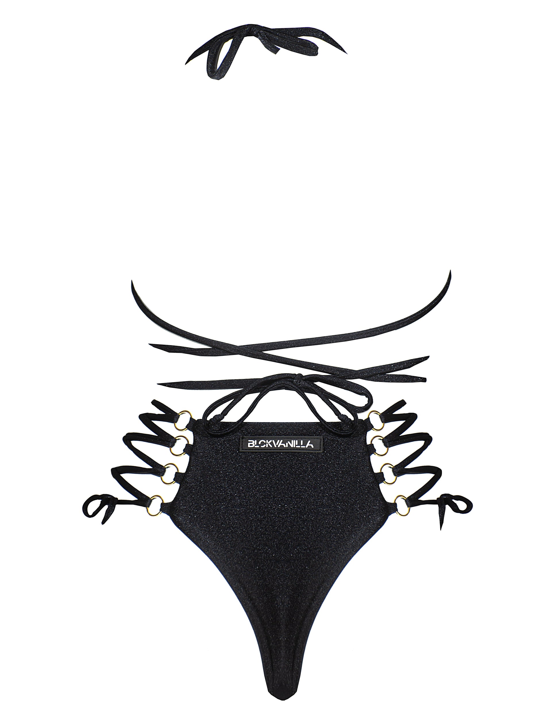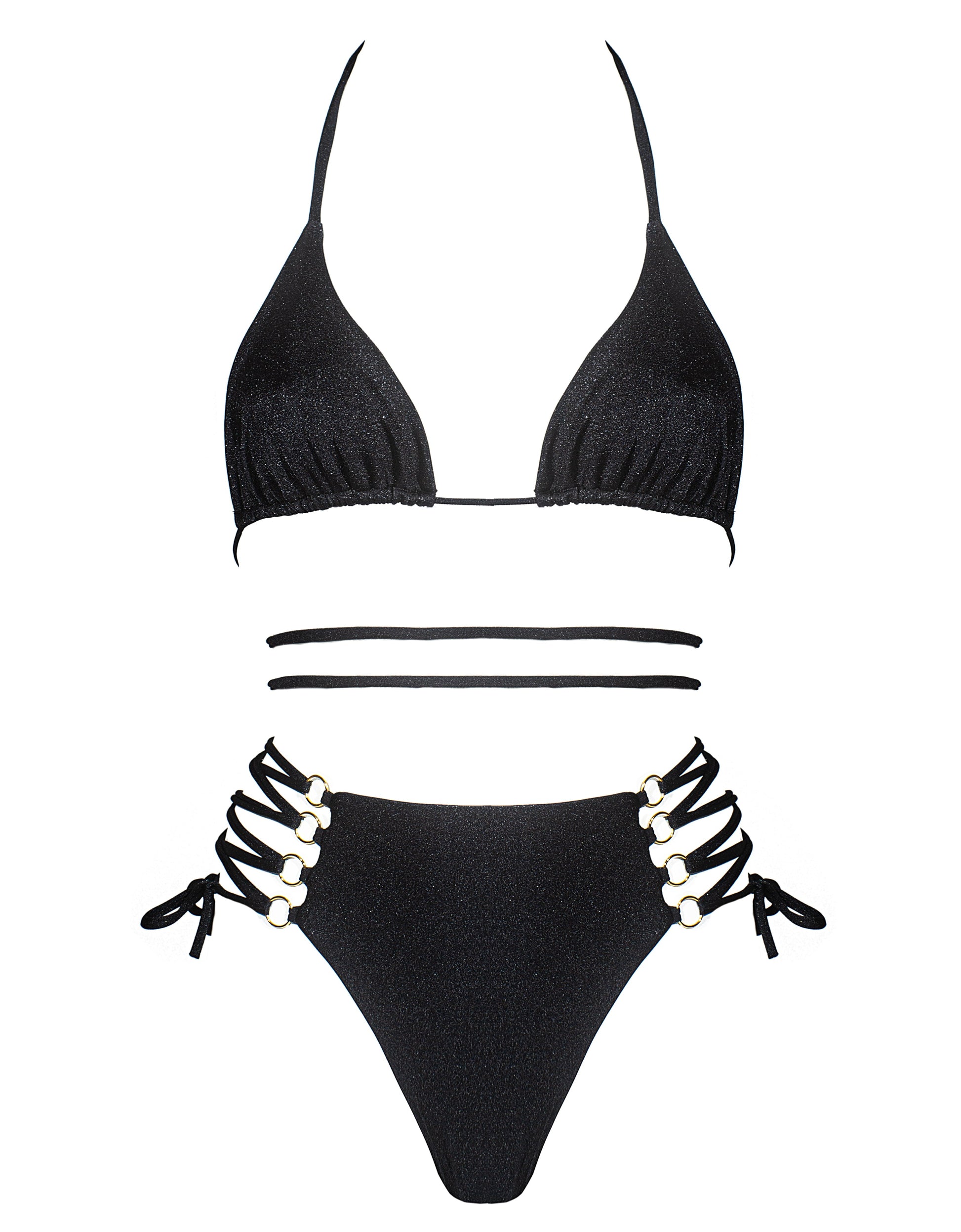 Лимитирана серия бански, от изключително висок клас, мека, еластична и нежна ликра. Металните аксесоари са с 24-каратова позлата. Висока талия долна част с голяма степен на регулация в размера. Възможност за различни визии, спрямо начина на връзване на горната и долната част. UPF 50+ UV защита